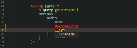 When writing integration tests for HotChocolate, you find yourself often writing GraphQL queries in string literals. The most challenging part of writing an integration test is to write the query correctly. You quickly forget a bracket, the name of a field or a required input field and you end up with an invalid query.
