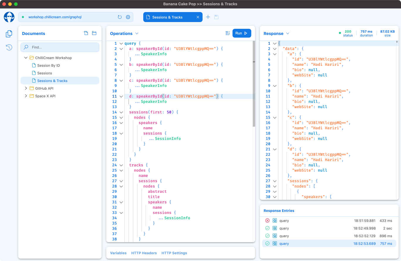 Banana Cake Pop makes it easy and enjoyable to test your GraphQL server implementations. It works well with Hot Chocolate and any other GraphQL server. Try it out and give us feedback via slack in the #banana-cake-pop channel.